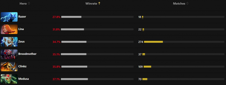 Razor – герой побеждает в 27.8% игр. Винрейт