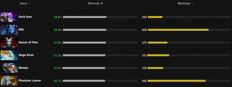 Dark Seer имеет самый высокий винрейт в матчмейкинге Dota 2 на рейтинге свыше семи тысяч MMR – процент побед персонажа превышает 58 пунктов. Второе место по этому показателю занимает