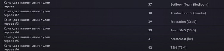 BetBoom Team оказалась командой с наименьшим пулом героев среди всех участников ESL One Berlin Major 2023 – восточноевропейский коллектив использовал 37 уникальных персонажей на чемпионате. Самый широкий пул героев оказался у