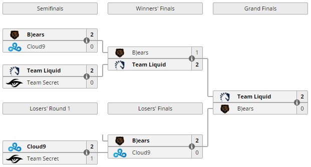 Team Liquid (победитель европейской квалификации)- TBD (победитель американской квалификации)