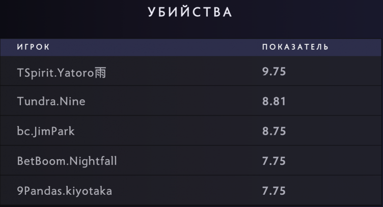 Илья «Yatoro» Мулярчук в среднем делал больше всех убийств за одну игру (9.75) во время групповой стадии балийского мейджора по Dota 2. На втором месте находится