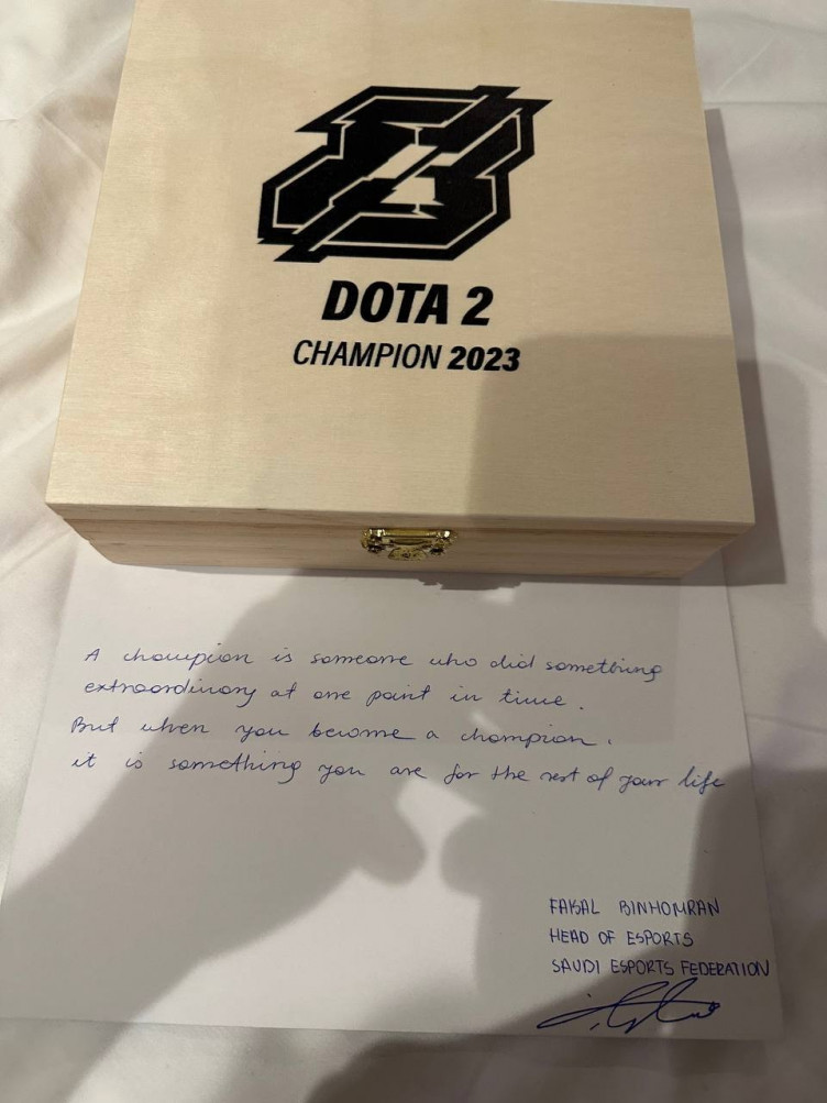 Team Spirit получили медали за победу на минувшем чемпионате Riyadh Masters 2023 в Саудовской Аравии. К подарку также прилагалась записка от члена королевской семьи Саудовской Аравии, который по совместительству является вице-президентом Международной федерации киберспорта (IESF) и главой Федерации киберспорта Саудовской Аравии.