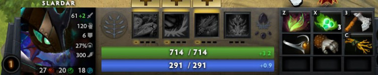Третий - Slardar! За последний год было много патчей с бафами и нерфами героя, суммарно герой точно стал сильнее. В отличии от двух предыдущих героев, Slardar - сильный лейнер с первых уровней, хороший показатель брони и атаки, хорошие способности на трейд. Также в мете много сапортов, с которыми слардар идеально сочетается на линии и по игре - грим, венга, виллоу, тускар, феникс, скай - со всеми можно разваливать линию и делать килы вдвоём всю игру