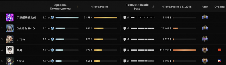 Пользователь с ником 手速爆表喻文州 купил 5.2 тысячи уровней для нового компендиума. На это он потратил больше двух тысяч долларов США. На данный момент это рекордный показатель.