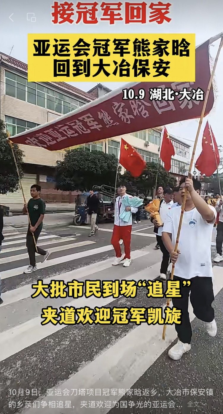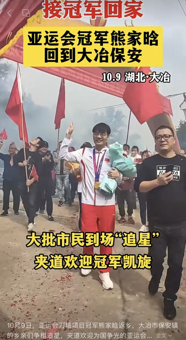В родном городе Pyw устроили церемонию в честь победы сборной Китая на Азиатских играх