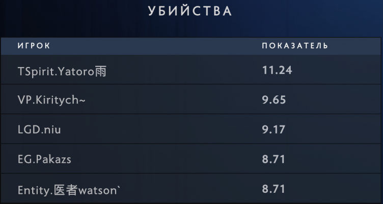Илья «Yatoro» Мулярчук в среднем делал больше всех убийств за одну игру (11.24) во время The International 2023. На втором месте находится керри восточноевропейского коллектива