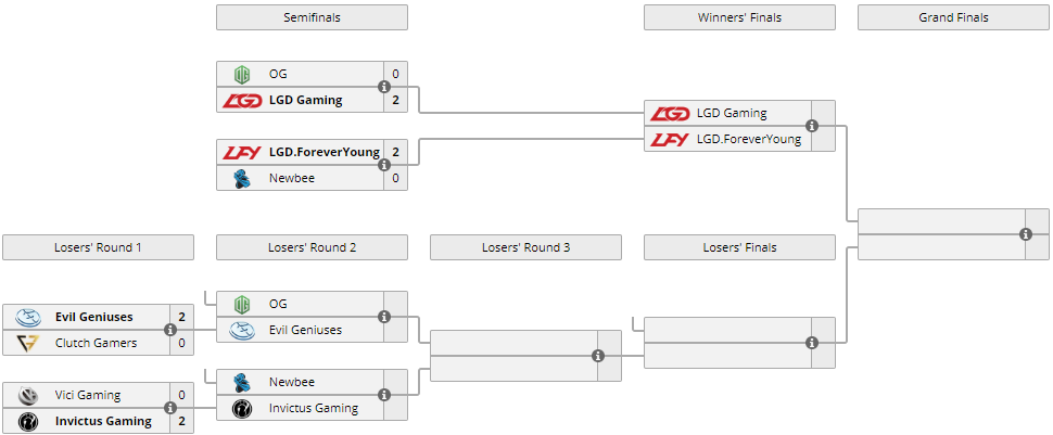 LGD.ForeverYoung, в финал прошли LGD и LGD.FY. Все вышеперечисленные матчи завершились со счетом 2:0.