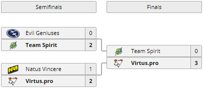 — Полуфинальные матчи best-of-3 (до двух побед), финал best-of-5 (до трех побед)